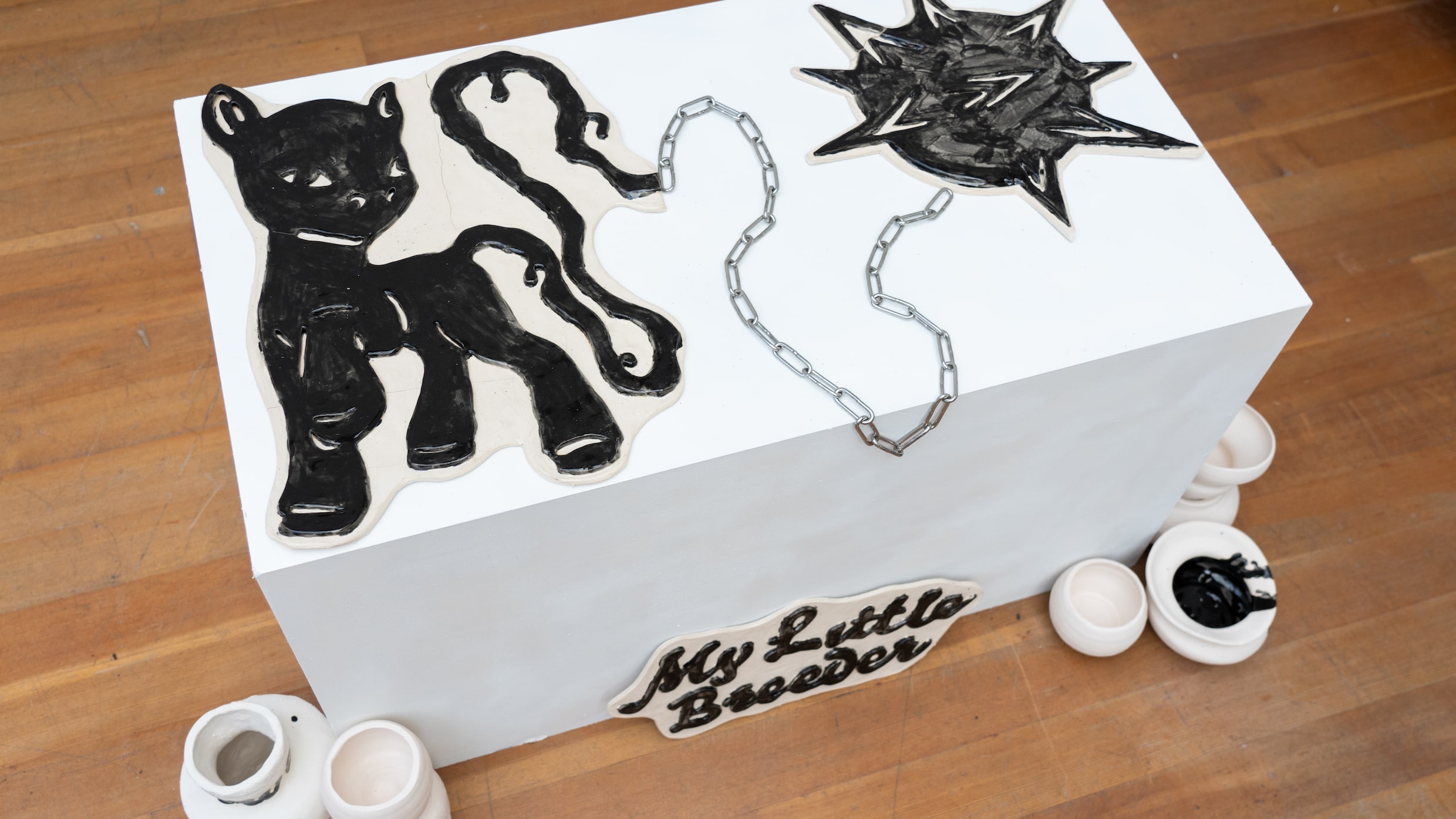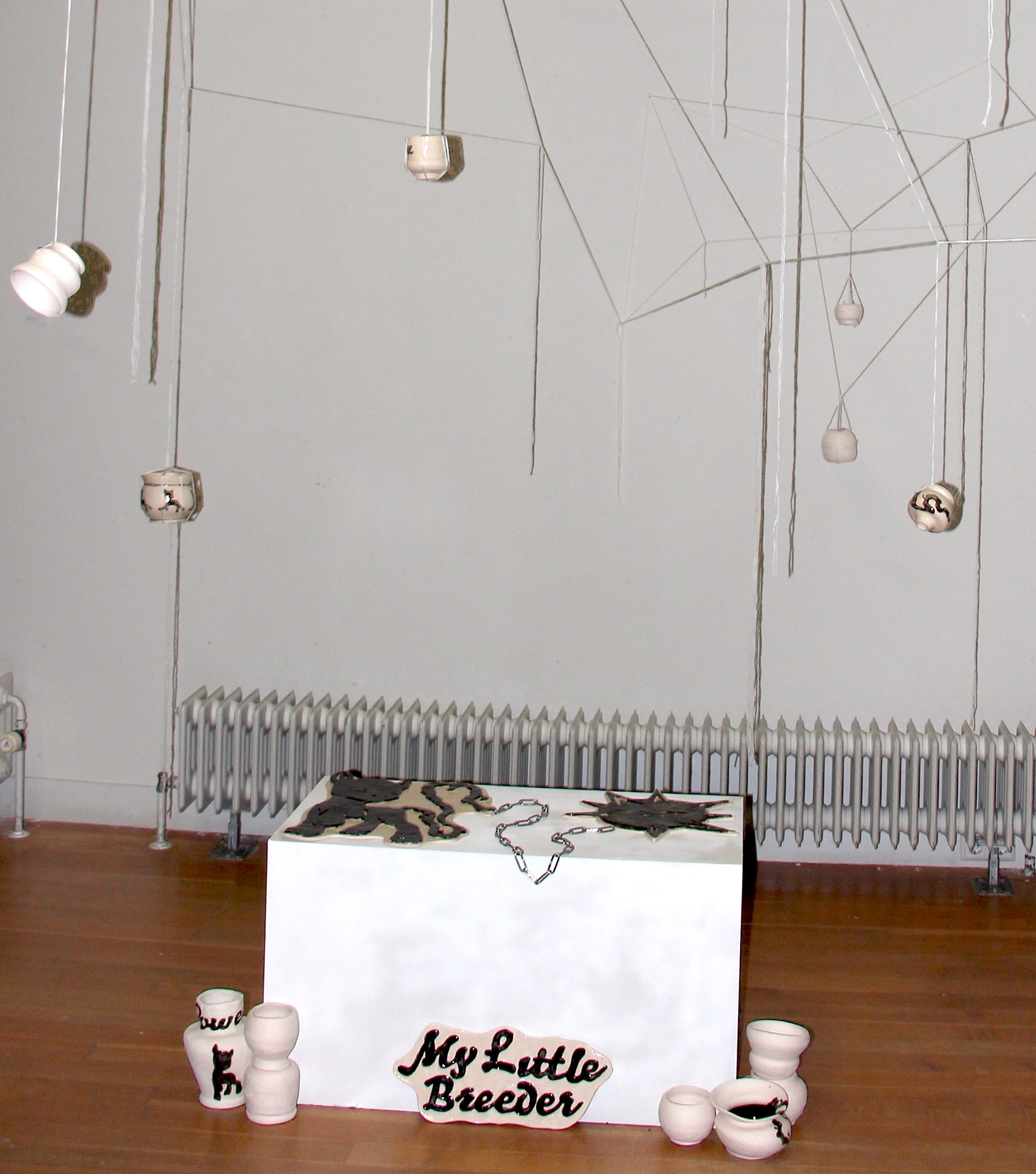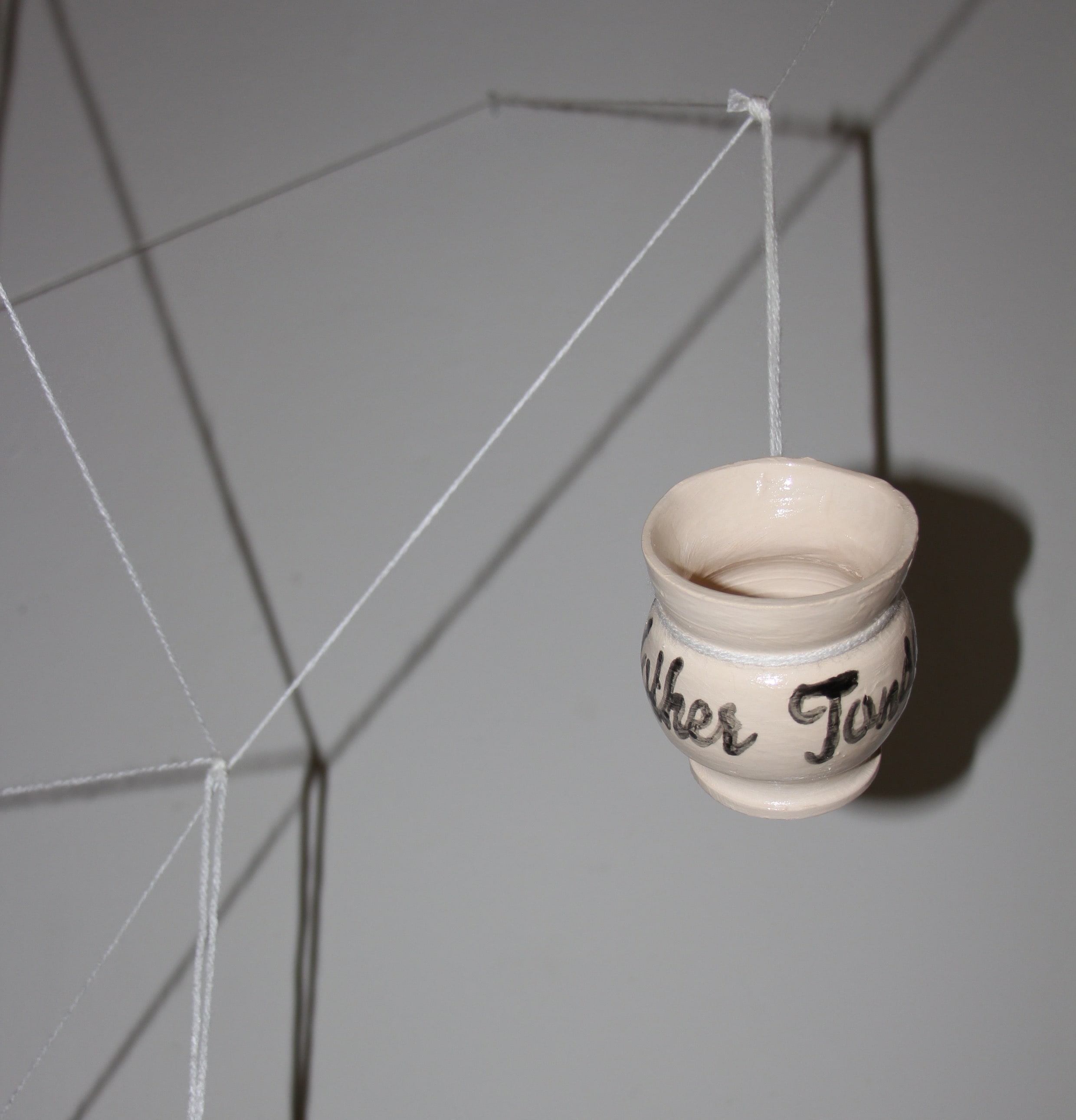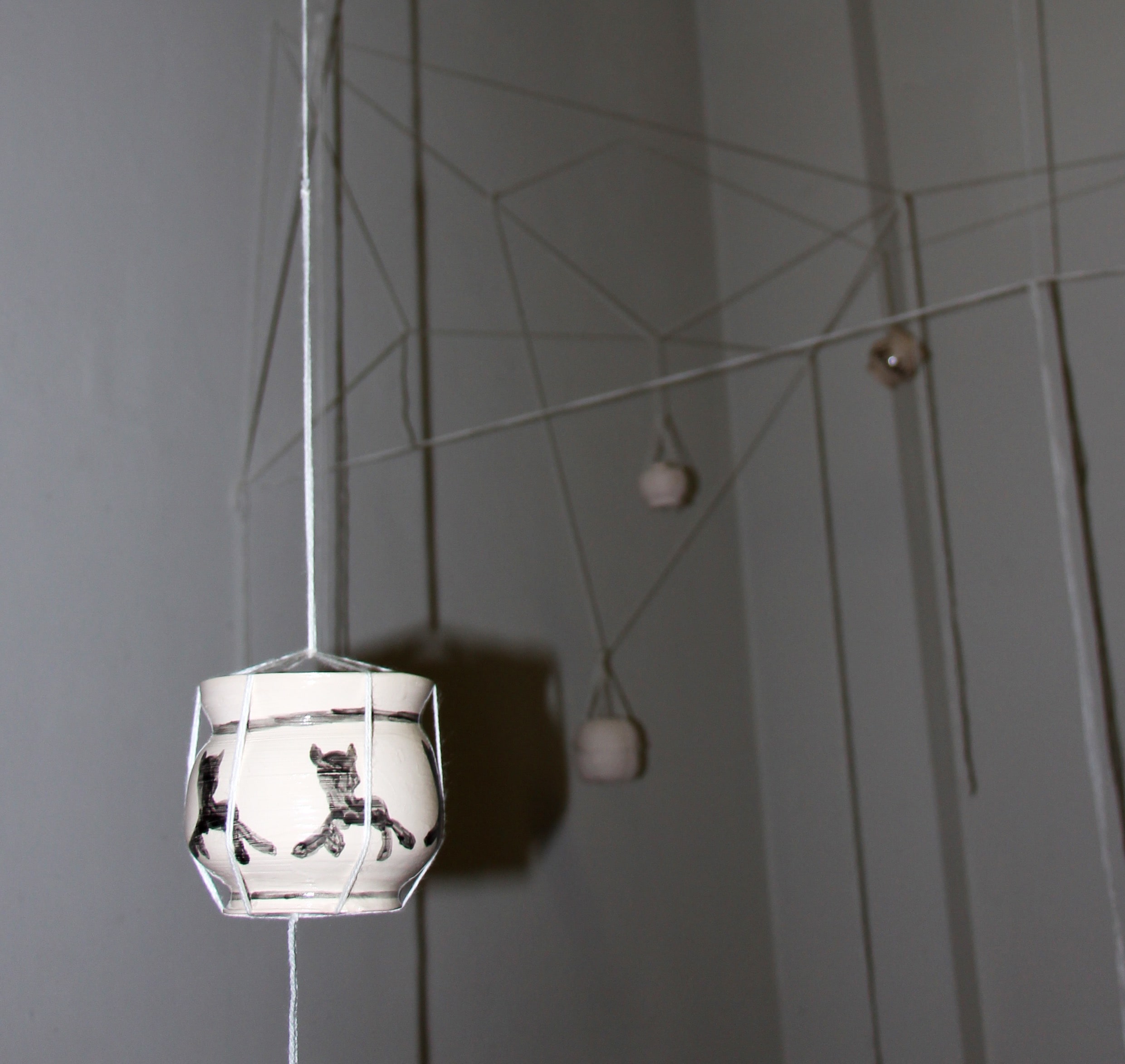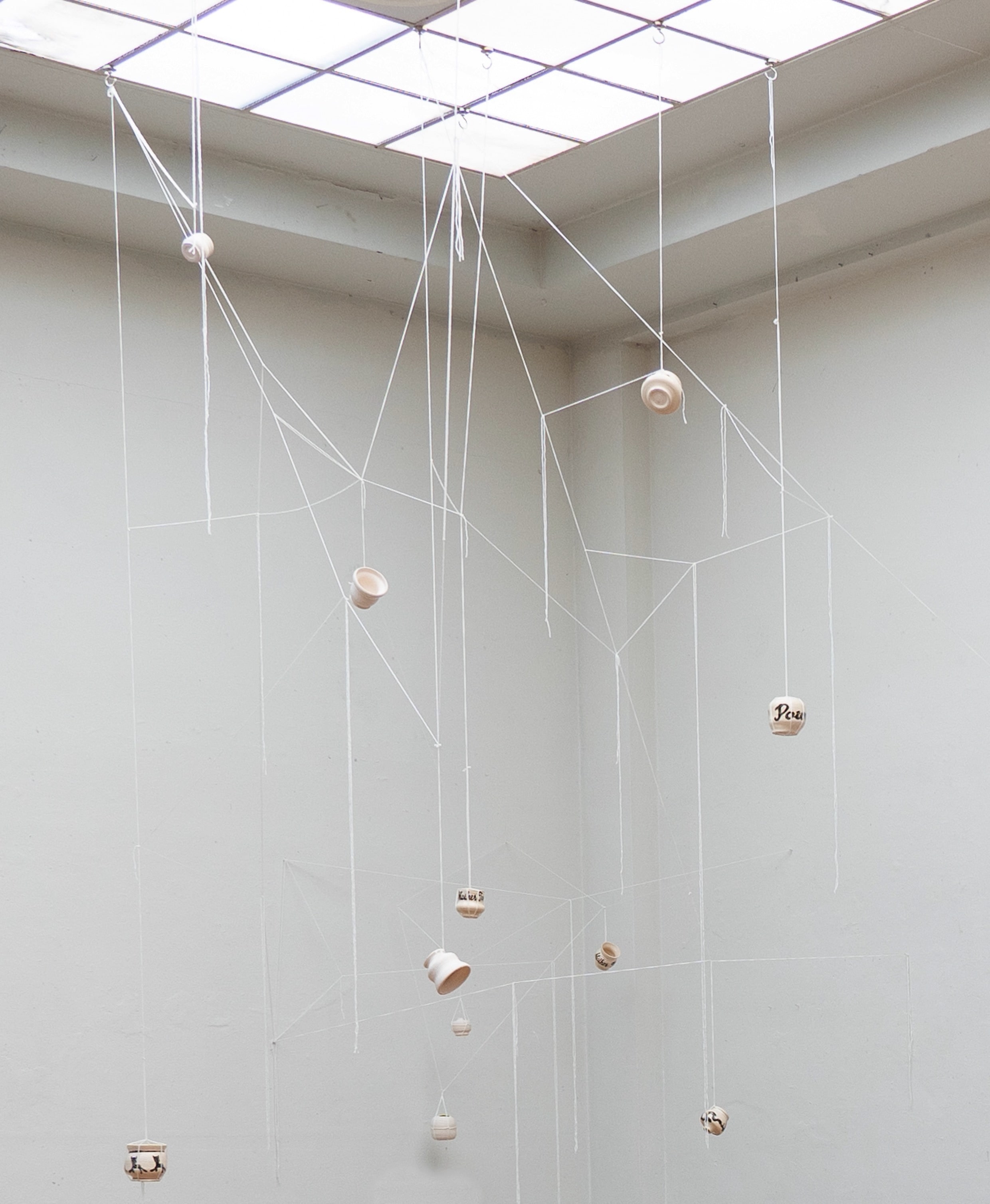 The installation consists of more than 30 kilos of clay. The material is chosen because it is sustainable and can survive for many years from now. That way it will keep on telling the story of our contemporary society. Some of the clay is shaped as vases in several different shapes, some clay is shaped into a relief.