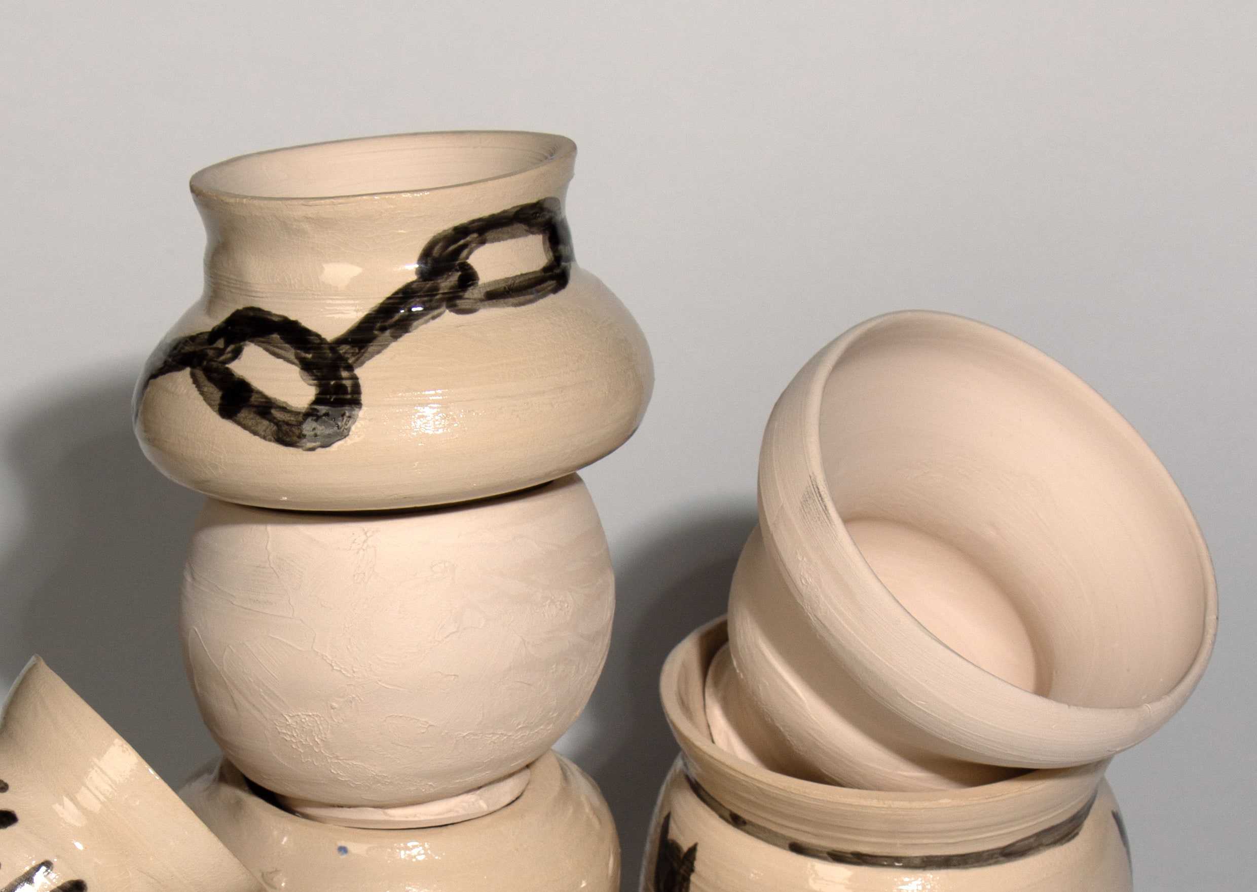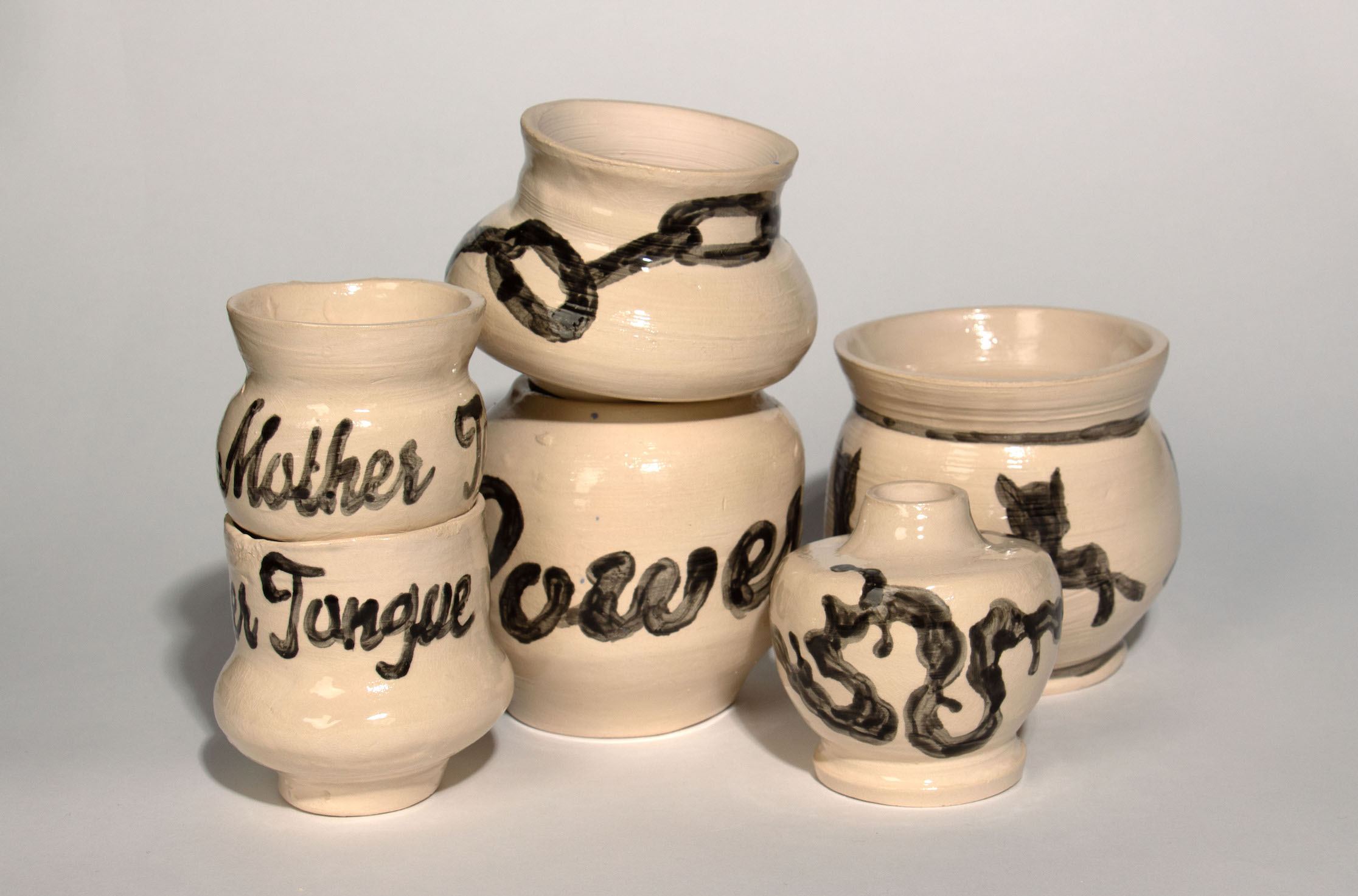 The vases intend to symbolize not only labour and trial, but are also a carrier of the story and visual representation of the process of learning and ongoing curiosity. The latter is heavily inspired by the publication ‘The Carrier Bag Theory of Fiction’ by feminist science fiction author Ursula K. Le Guin. The relief that compliments the vases is a representation of Marcussen’s fragmented memories and her understanding of being a kid in her formative years in Denmark in the early 2000’s.