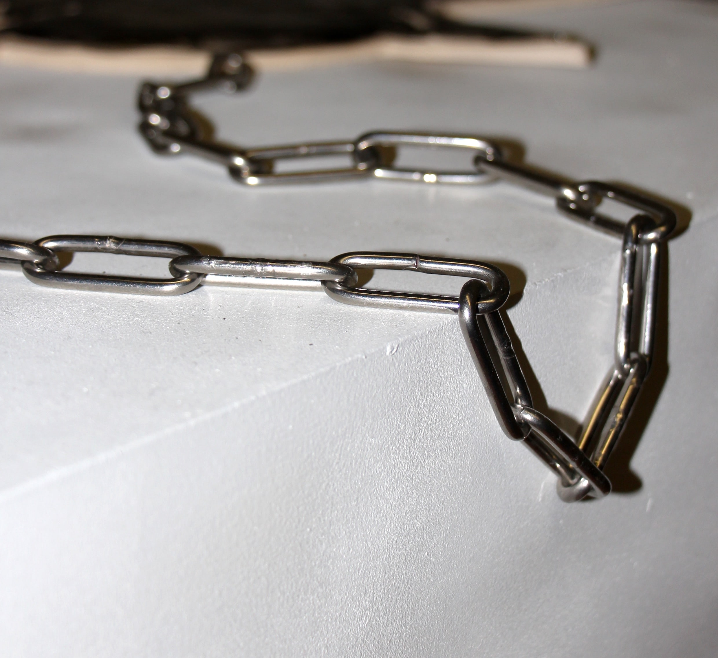 Clay, metal chain, yarn