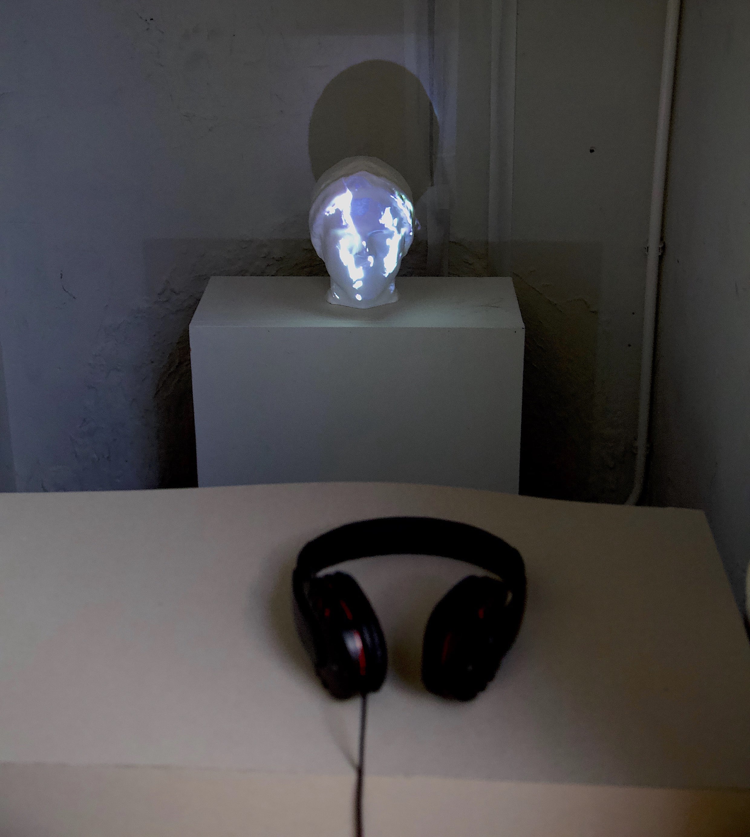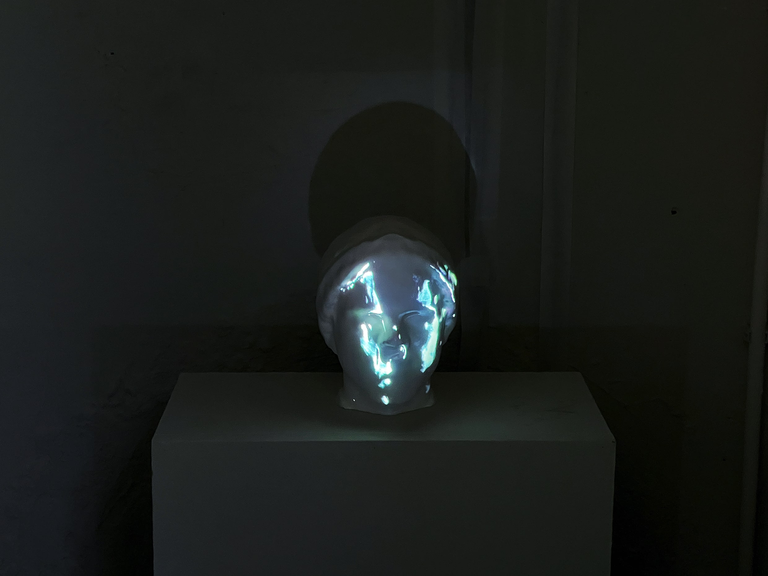 Jonker is juxtaposing the flow of liquids with the flow of the relations, even though it is intangible. The optical illusion of the two faces visualized in his video installation function as a container for the fluidity of an old connection. The accompanying poem is an attempt to capture connection through spoken word.
