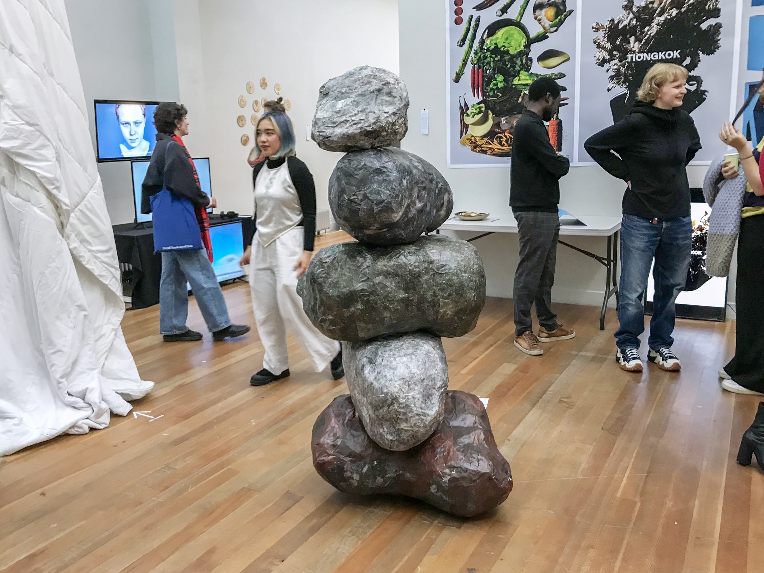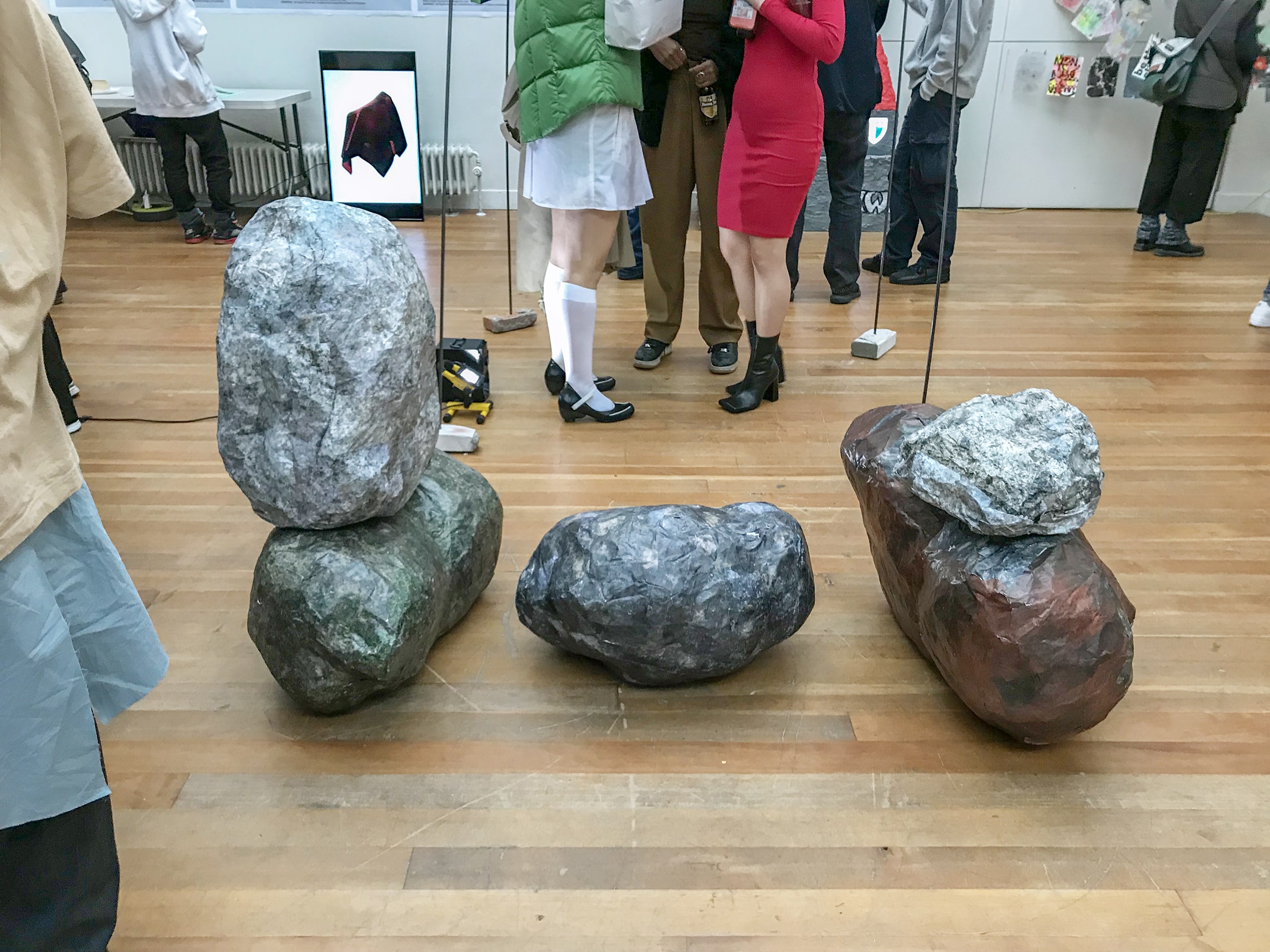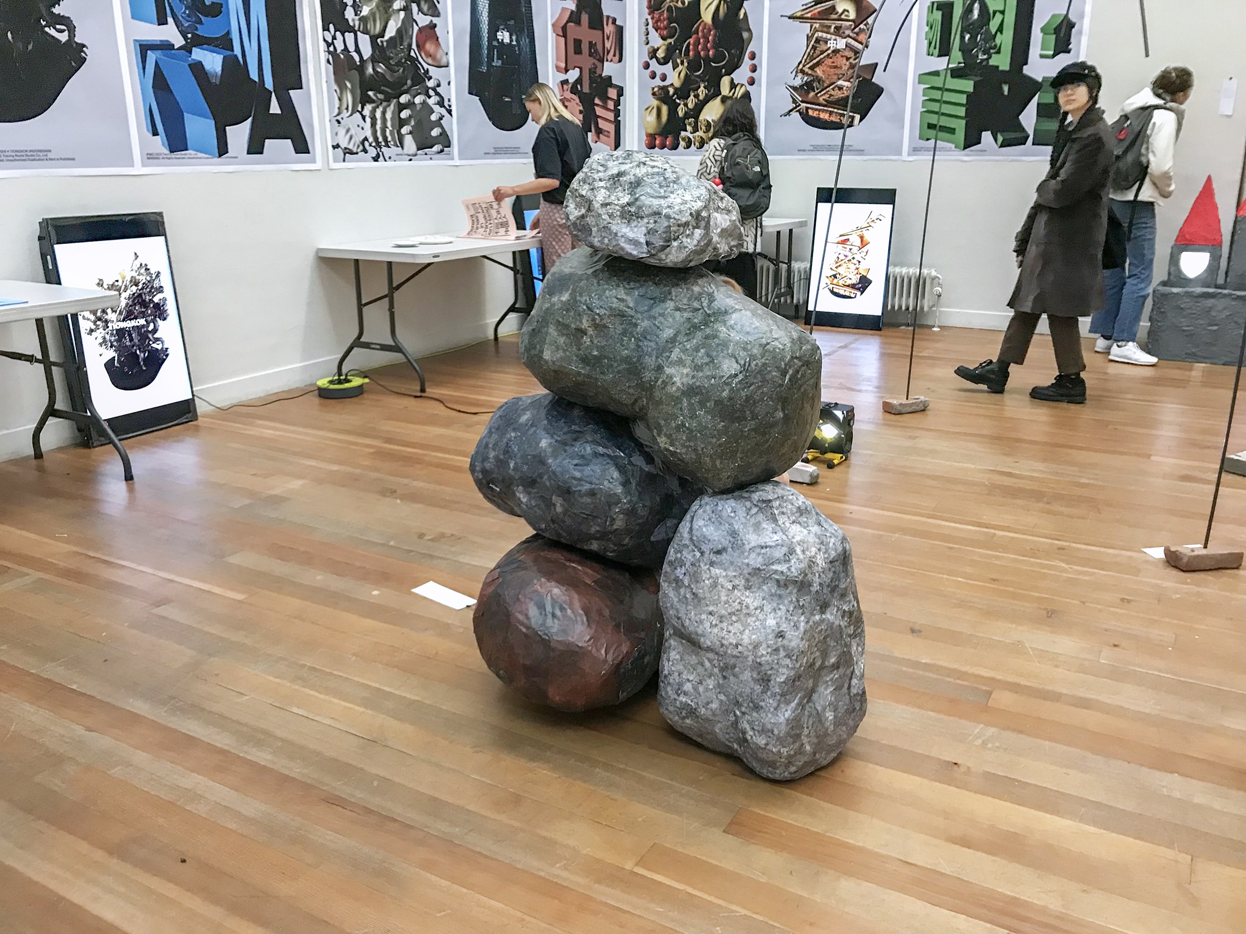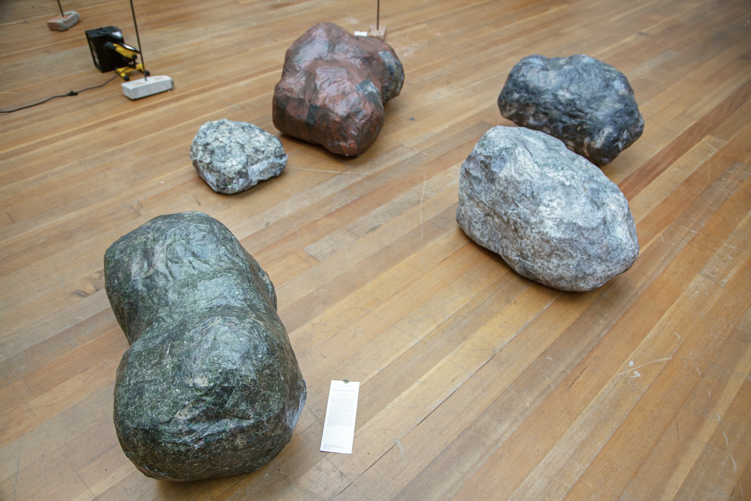 These large rocks, with many details, texture and their solid state are a metaphor of the artist’s Latvian identity, which serve as a basis for his future, as cornerstones do for a house. The continuous change of placement of the rocks represent the different influences, presence and implications one’s core values can have on themselves. The title of the installation also implies: history stays, but you have a choice to alter the results.
