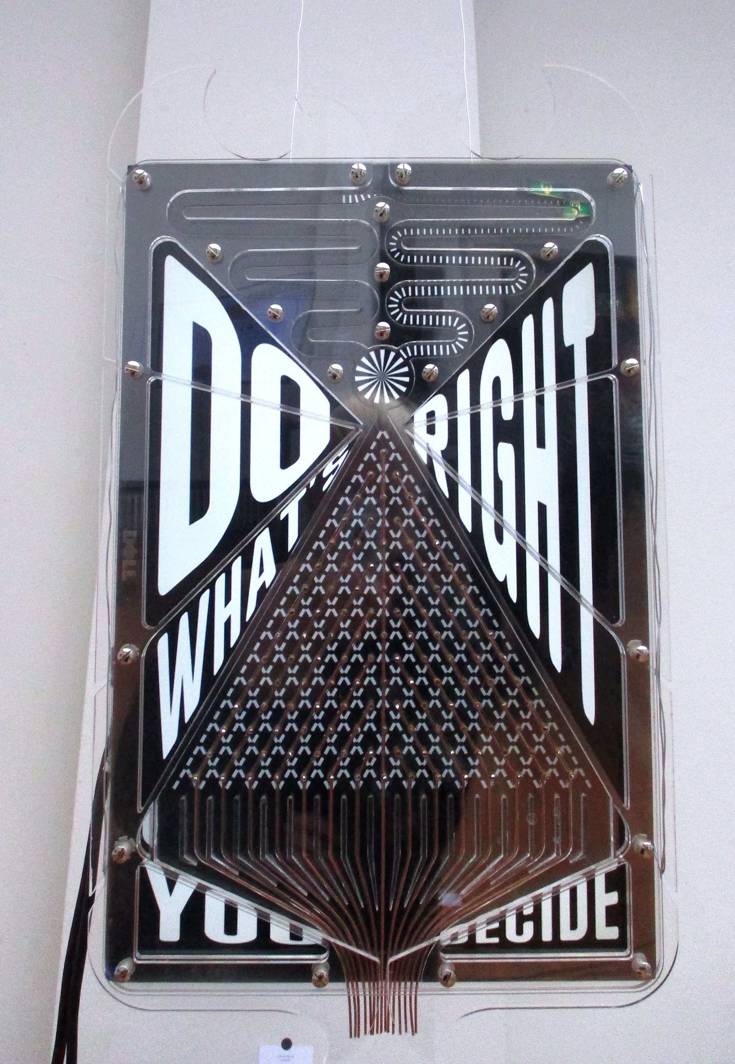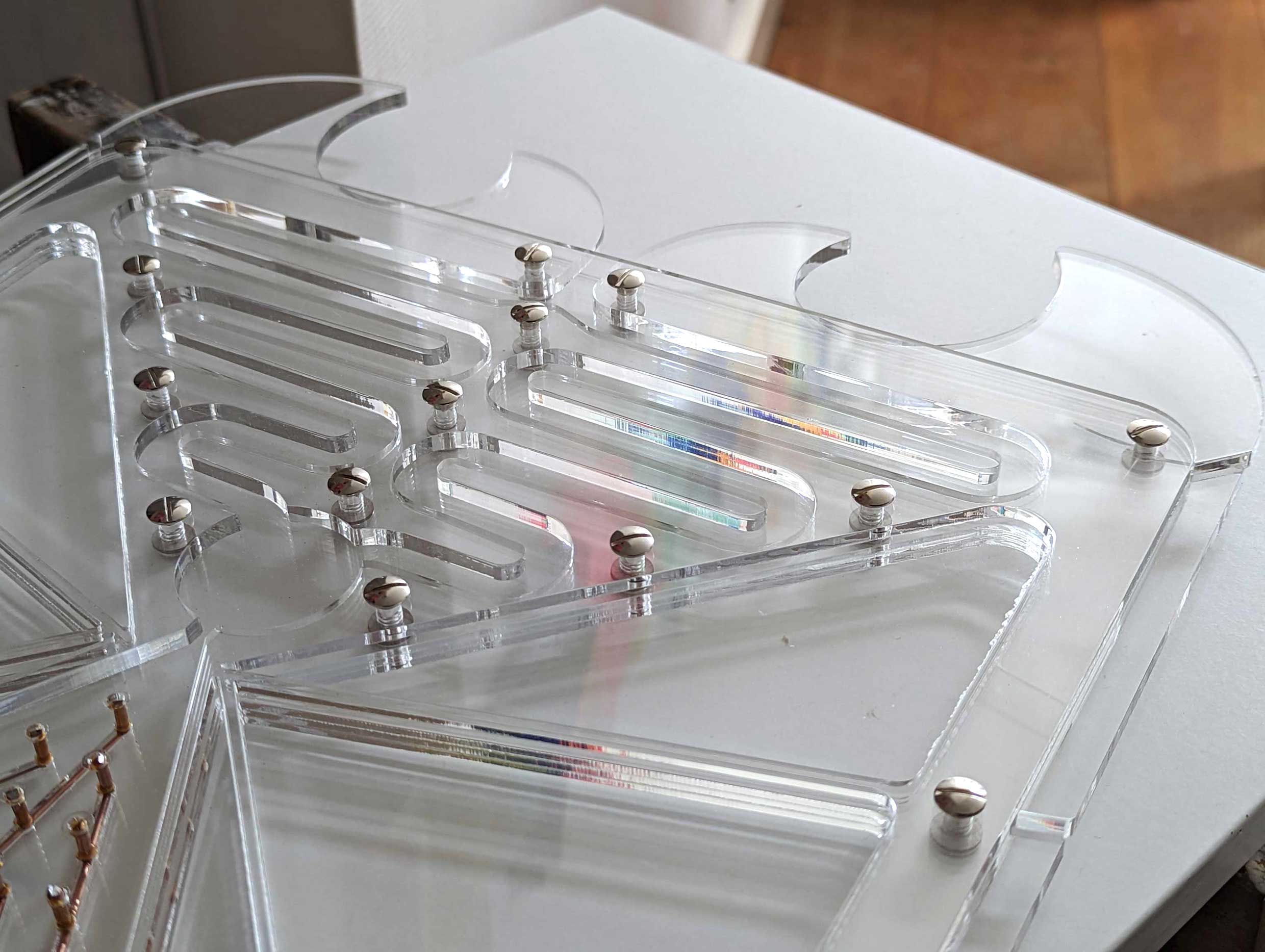 In ‘Roots of Tomorrow’, Olijkan explores the evolution of identity through an interactive installation. The work reflects on the randomness of life and fear related to making the wrong choices. By borrowing elements from roulette and pinball aesthetics, while also referencing mathematical models used in probability theory, Olijkan materializes the symbiotic relation between the two subjects.