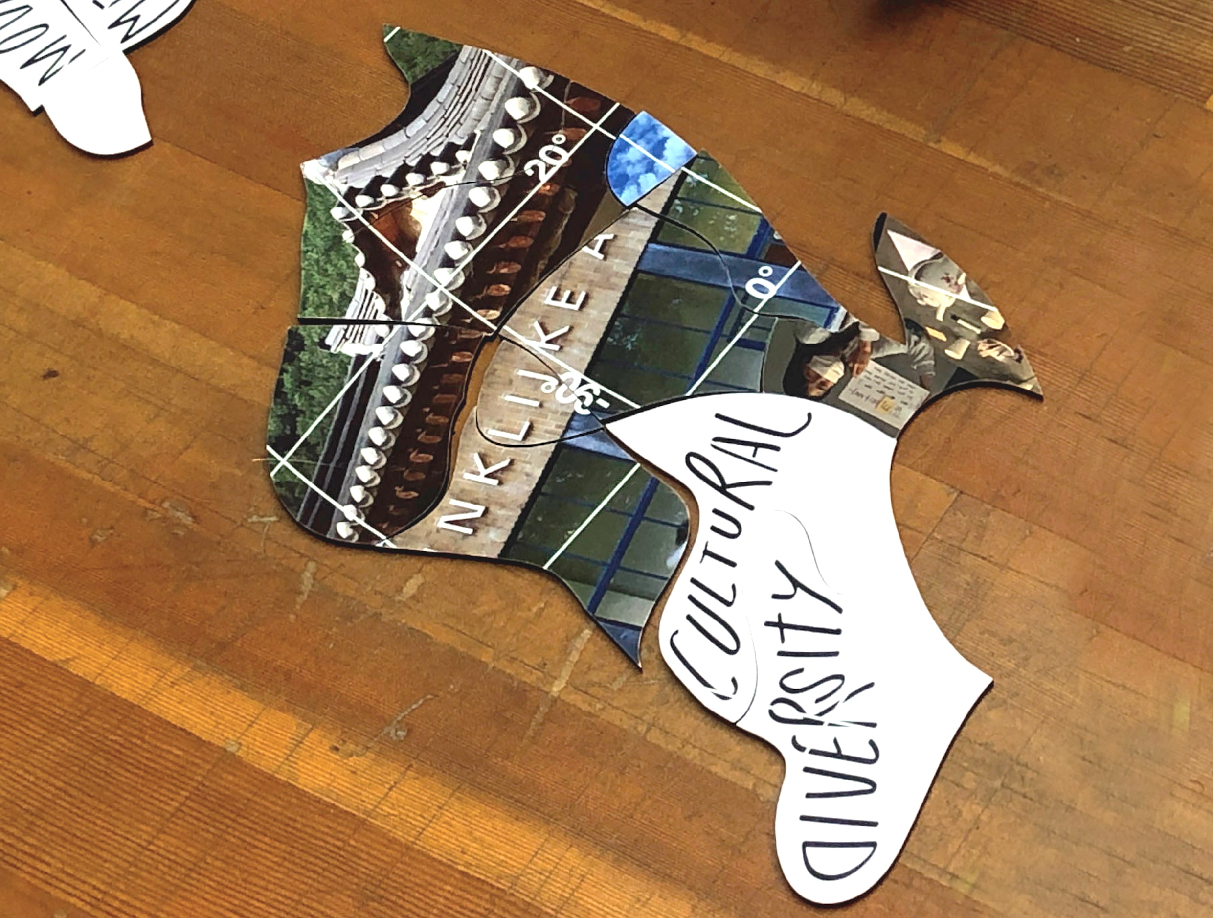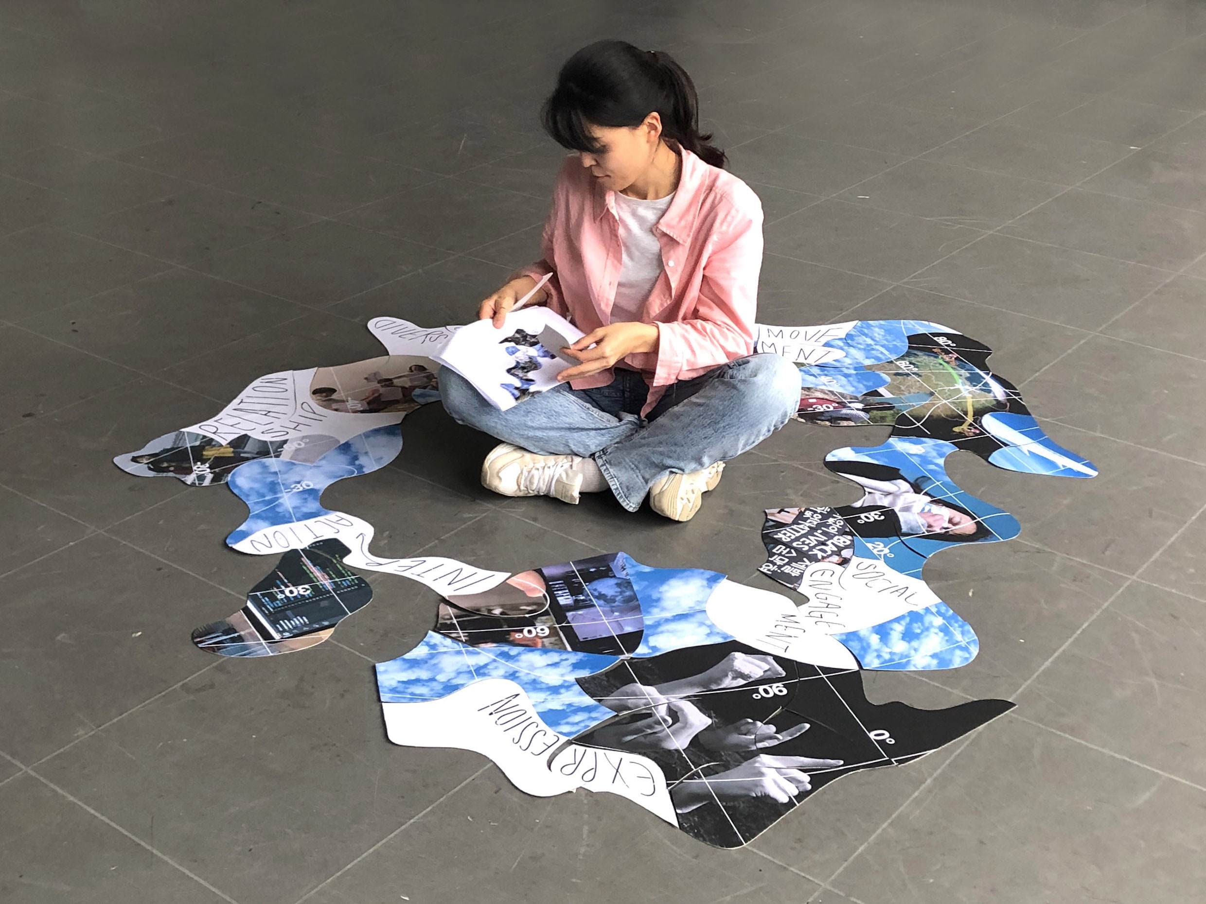 Each ‘life journey’ is connected and has a close relationship with each other, like a puzzle. The sizes of her puzzle pieces vary but are always connected and together they shape a unique whole. Like in society, one doesn’t exist without the other, as embodied by Kim as she plays her game in the exhibition.