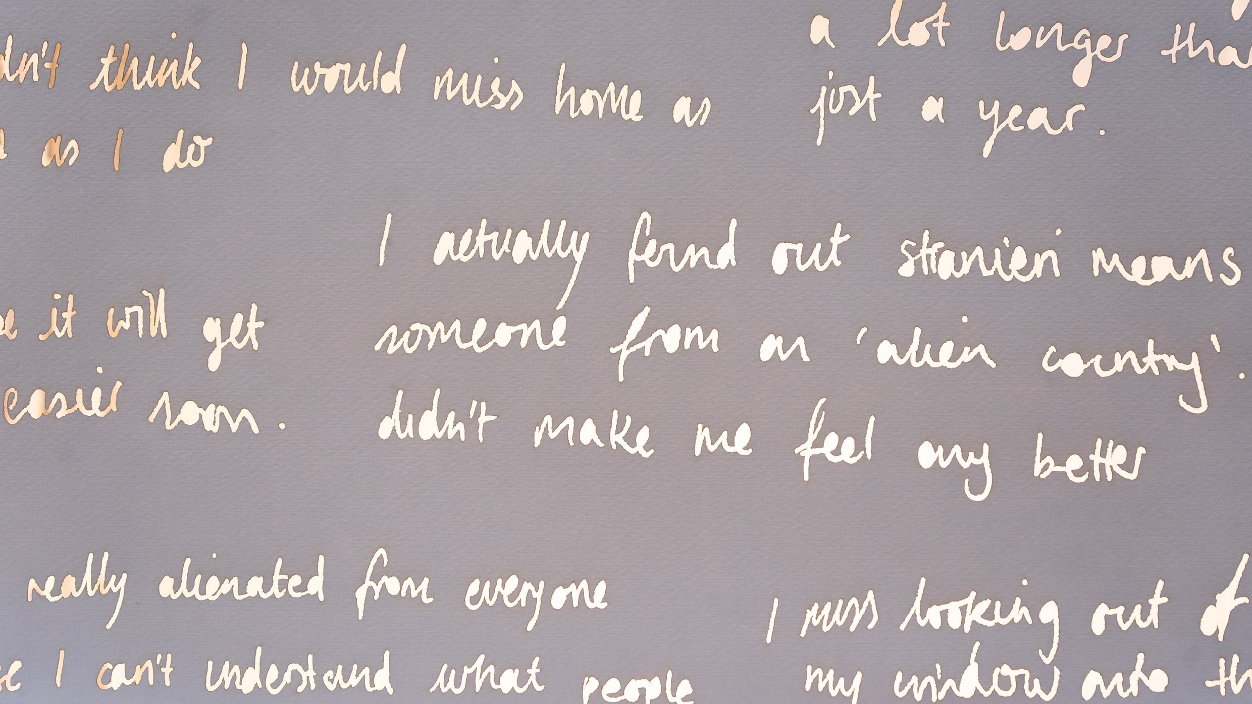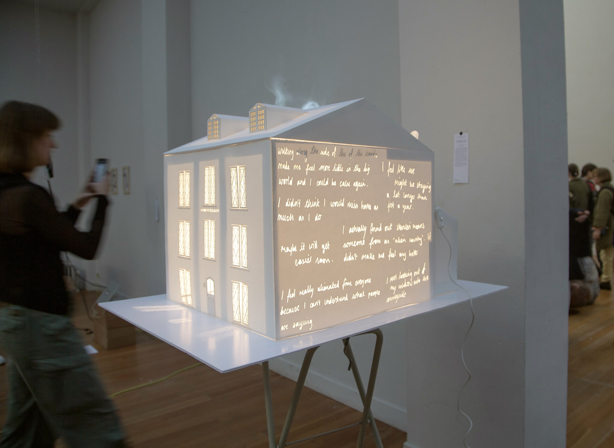 Growing up in Italy from the ages of 13-17 led Norman to hold onto romanticised elements from her life in England as an adolescent, most notably the house she grew up in. She plays with the idea of longing for the home that no longer exists through creating an almost shell-like house on which are engraved diary entries that documented this transitional period in her life.